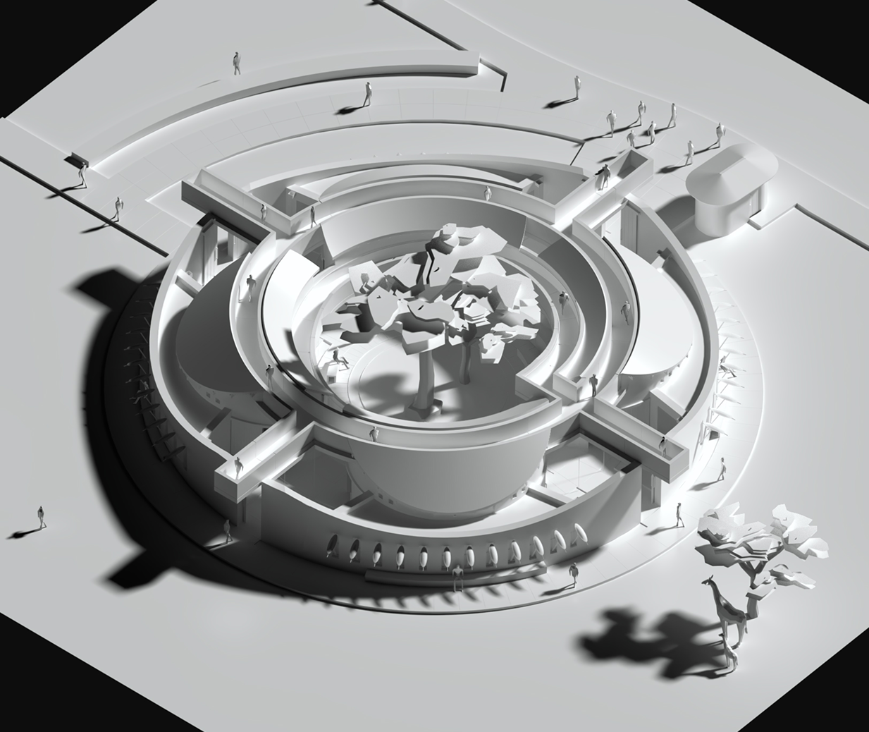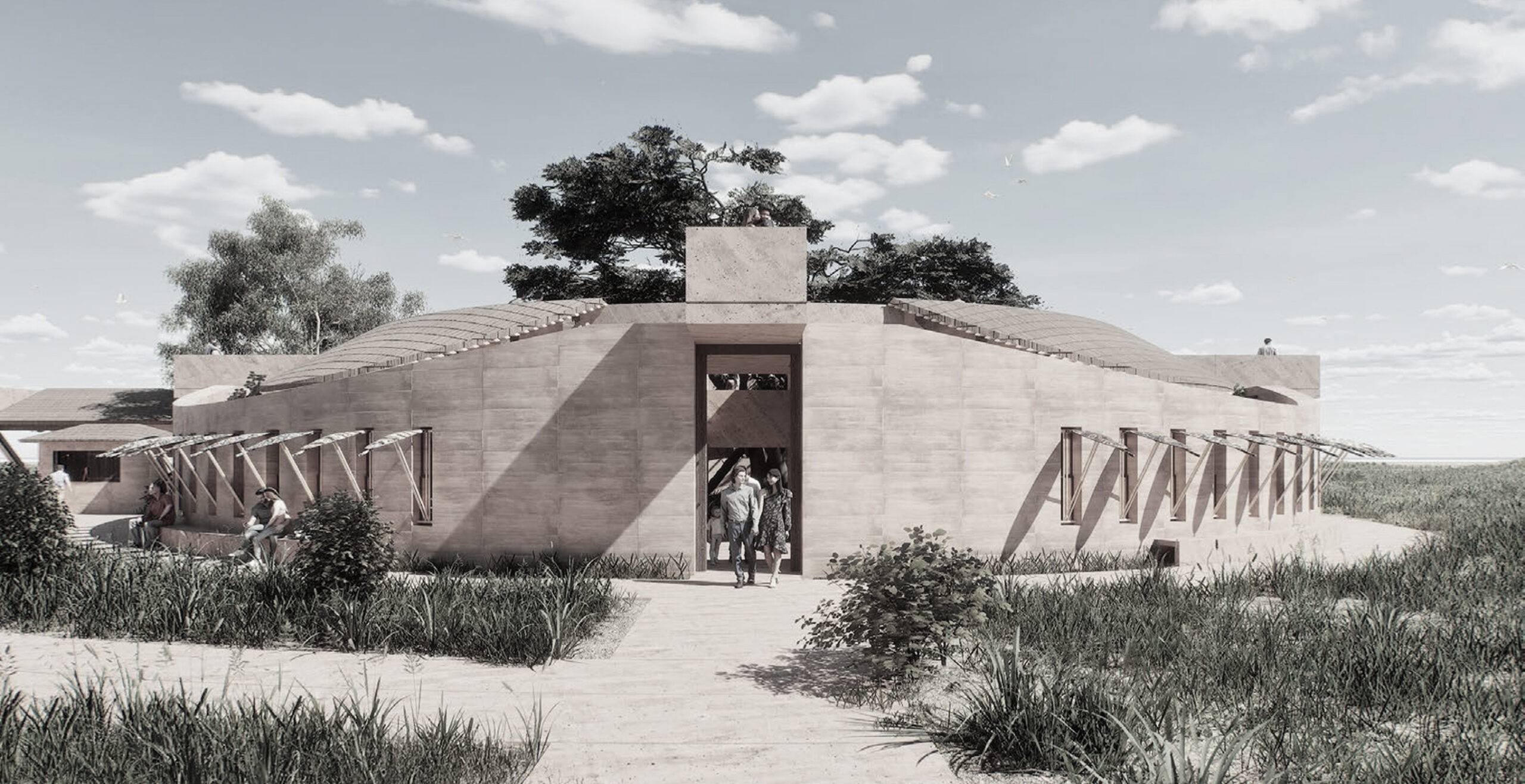 The proposed design sought to minimise operational and environmental impact through the integration of passive design strategies. These included thermal mass, solar shading and natural ventilation, eliminating the need for air-conditioning altogether. Inspired by the traditional layout of Masai “Manyatta” villages, most spaces are conceived as open to the exterior during operational hours, arranged around a central courtyard, offering shade and a quiet space for contemplation.